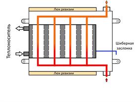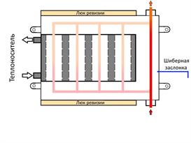 - при закрытой шиберной заслонке все газы проходят через жаровые трубы,